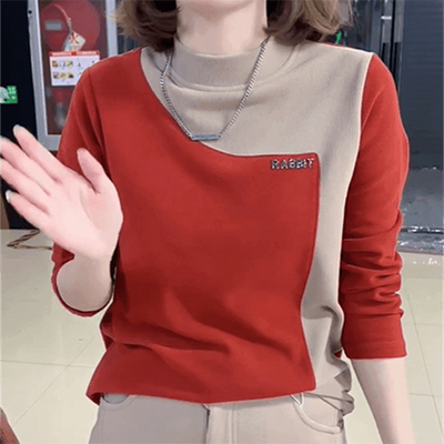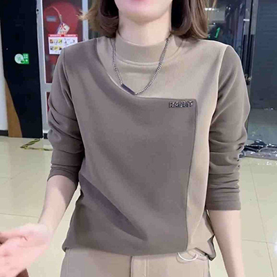 撞色德絨打底衫,買一送一,雙面德絨,舒適保暖,寬鬆下擺不束縛